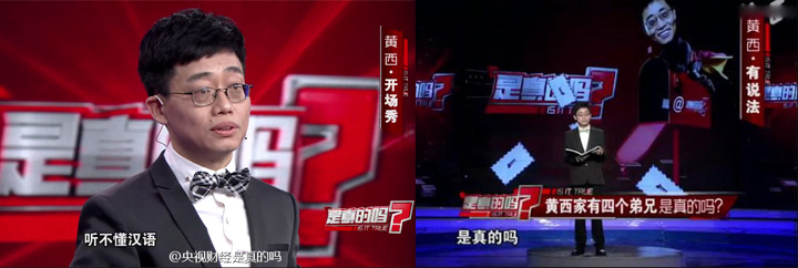 但令他真正為國(guó)人所知,還是受邀到美國(guó)白宮表演,當(dāng)面開美國(guó)總統(tǒng)的玩笑,獲得現(xiàn)場(chǎng)兩千四百位政界和新聞界人士起立鼓掌的“壯舉”。如今,黃西成為了央視節(jié)目《是真的嗎?》的主持人,得到了一個(gè)更好的展示才華的舞臺(tái),那么,《是真的嗎?》究竟是個(gè)怎樣的節(jié)目呢?請(qǐng)聽小編娓娓道來。
