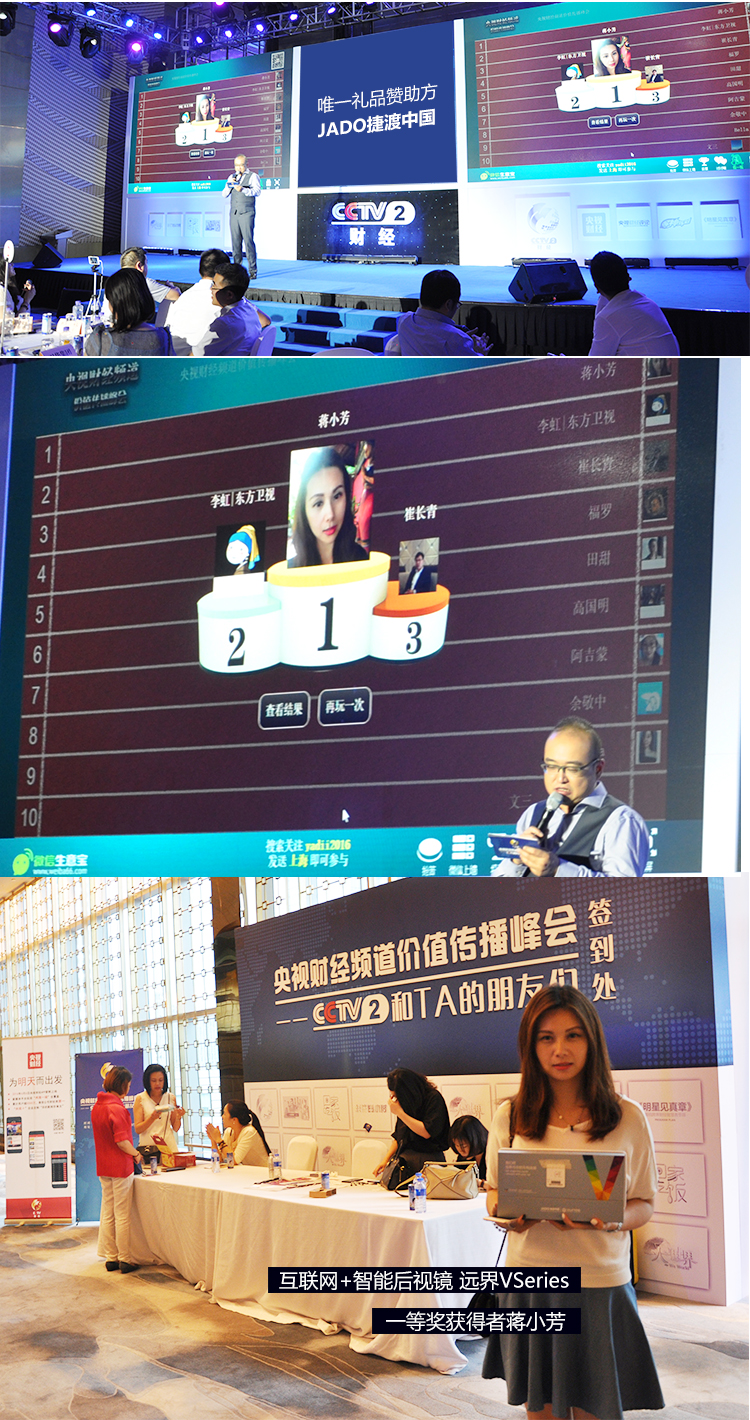 JADO捷渡中國聚焦此次“央視財經頻道價值峰會”,只為尋找最受車主關注的節(jié)目資源,為車主提供更加豐富多彩的節(jié)目。搜集資源,為客戶提供更多更好的機會,JADO捷渡中國已邀請客戶參與錄制過撒貝寧主持的《加油!向未來》,黃西主持的《是真的嗎》,還有尼格買提主持的《開門大吉》。