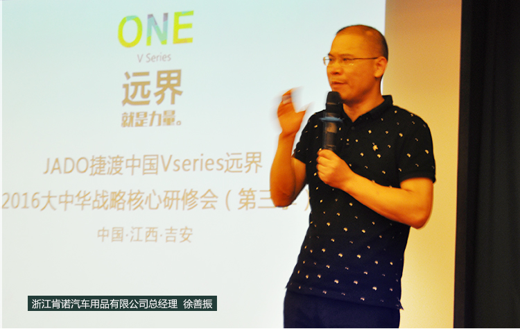 隨后,會(huì)議由JADO捷渡中國(上海)營銷中心總經(jīng)理陳問文先生致辭。陳總重點(diǎn)為大家講解了下一階段V Series遠(yuǎn)界的整體銷售計(jì)劃:面臨競(jìng)爭(zhēng)品牌的復(fù)制追趕, 8月份,各戰(zhàn)區(qū)將繼續(xù)全面推進(jìn)“體驗(yàn)有禮,e路驚喜”活動(dòng),同時(shí)聚焦V Series遠(yuǎn)界戰(zhàn)略合作伙伴的利益。