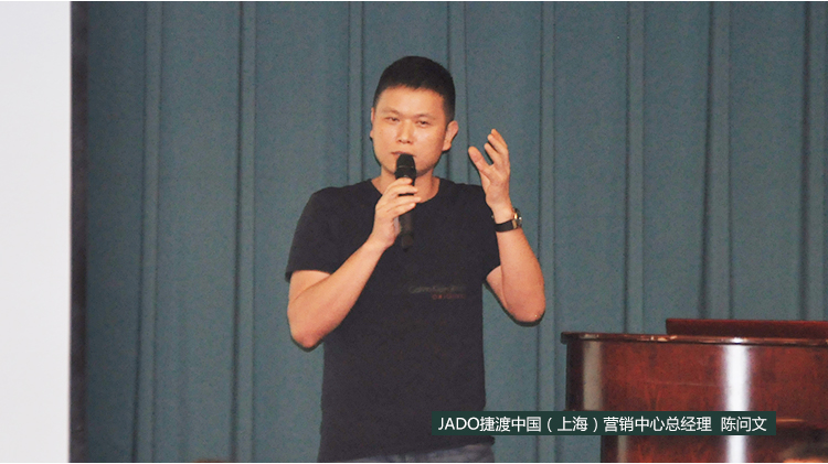 隨后,JADO捷渡中國上海營銷中心總經(jīng)理陳問文先生與大家一起回顧了各區(qū)域遠(yuǎn)界系列產(chǎn)品的銷售佳績。感謝各位核心粘盟成員對(duì)JADO捷渡中國的支持,并就銷售思路和銷售渠道的開拓與各位核心粘盟成員們進(jìn)行了全方位的探討。