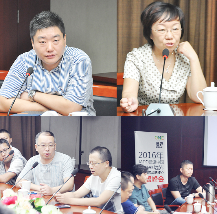 JADO捷渡中國董事長王杰、JADO捷渡中國(上海)營銷中心總經(jīng)理陳問文、JADO捷渡中國(上海)營銷中心副總經(jīng)理劉赟以及各省區(qū)戰(zhàn)略合作伙伴齊聚一堂,共同探討遠(yuǎn)界系列產(chǎn)品的未來發(fā)展方向。