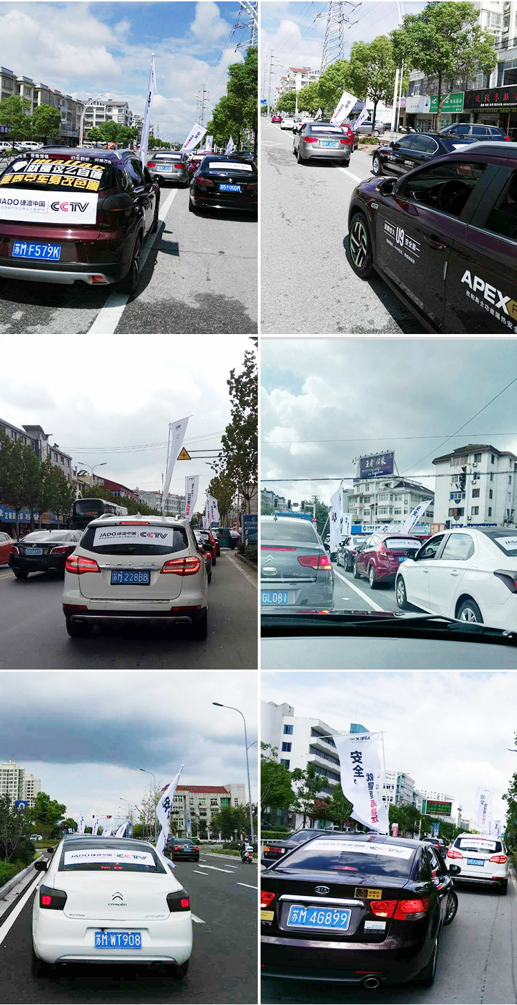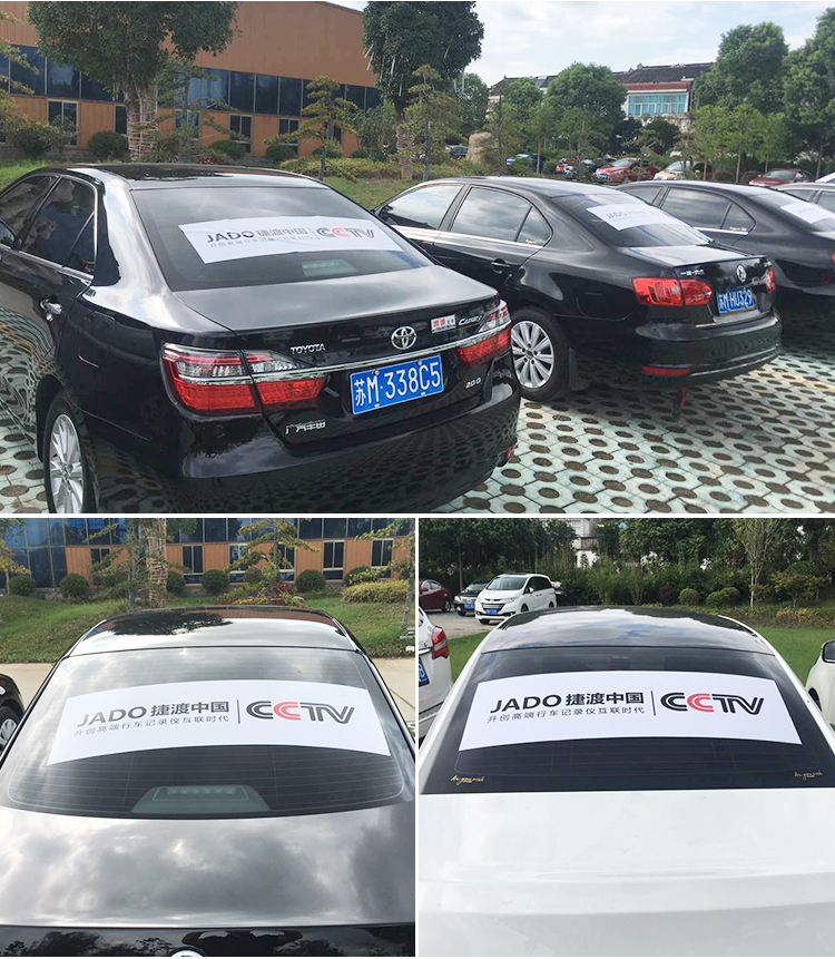 活動(dòng)開(kāi)始前,在揚(yáng)州天泓汽車(chē)貿(mào)易有限公司所有工作人員的密切配合下,近110輛私家車(chē)的后擋風(fēng)玻璃貼上了“JADO捷渡中國(guó)|CCTV”鮮明字樣的單透,并與車(chē)主達(dá)成共識(shí):文明駕乘,注意行車(chē)安全。