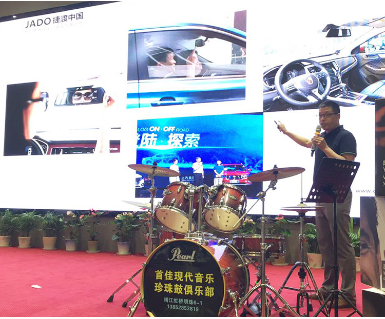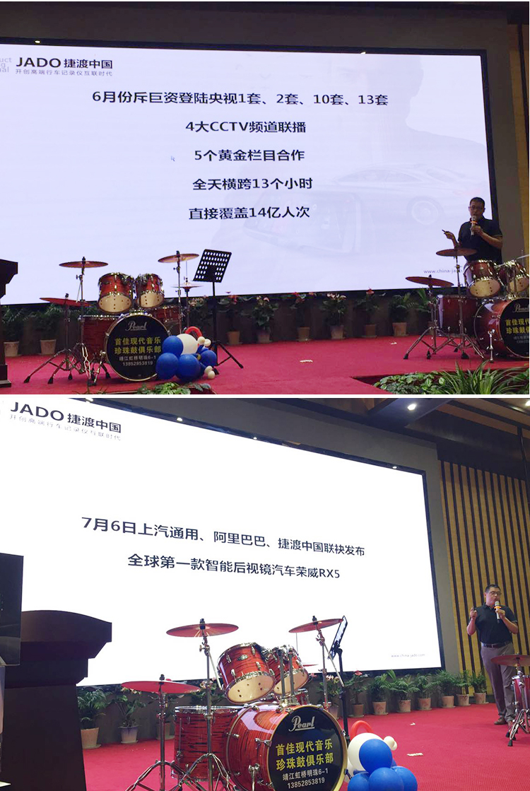 晚宴上,由揚(yáng)州天泓汽車(chē)貿(mào)易有限公司總經(jīng)理施德春先生上臺(tái)為大家介紹JADO捷渡VSeries遠(yuǎn)界系列產(chǎn)品。