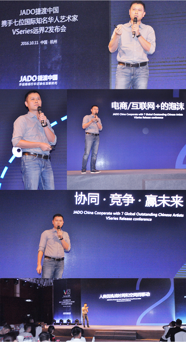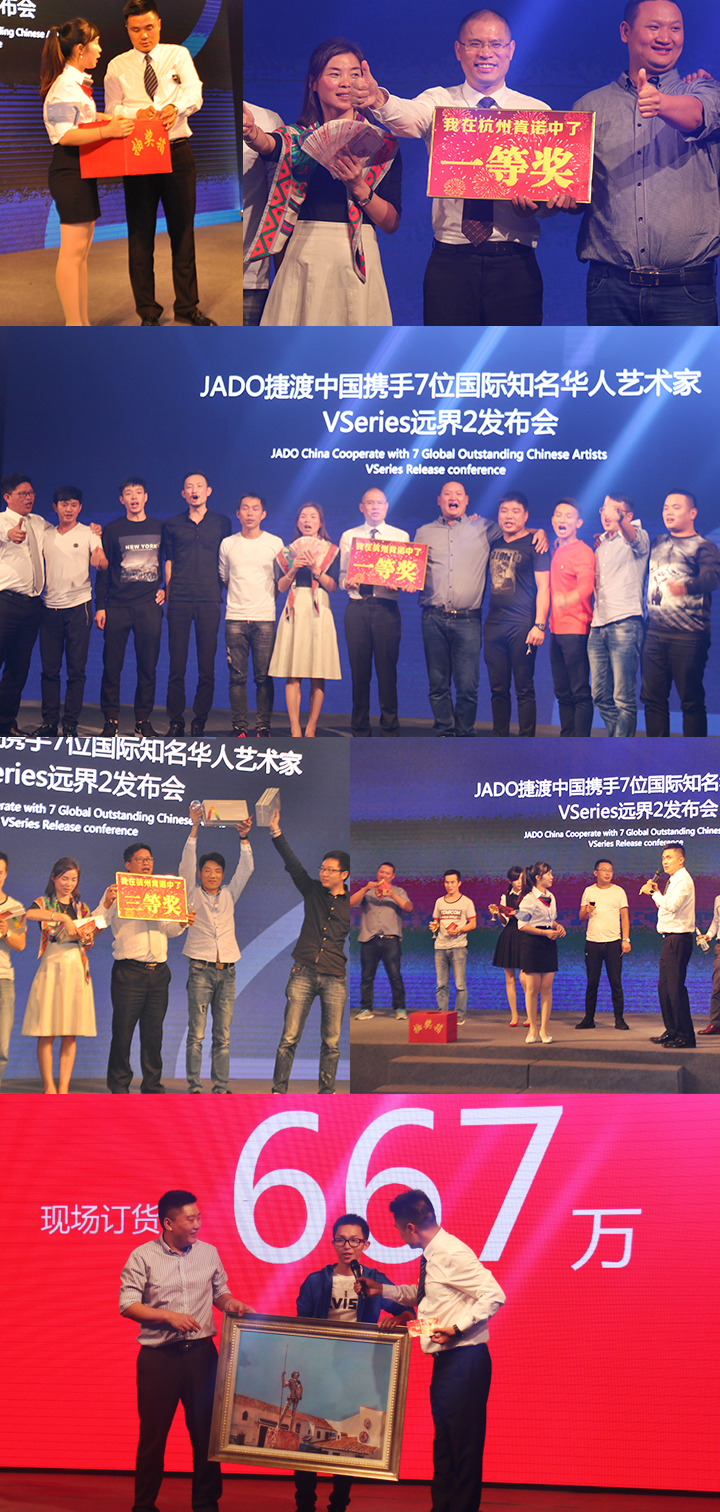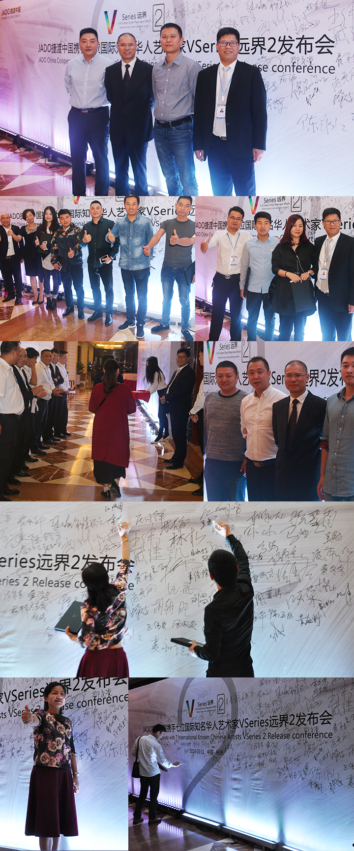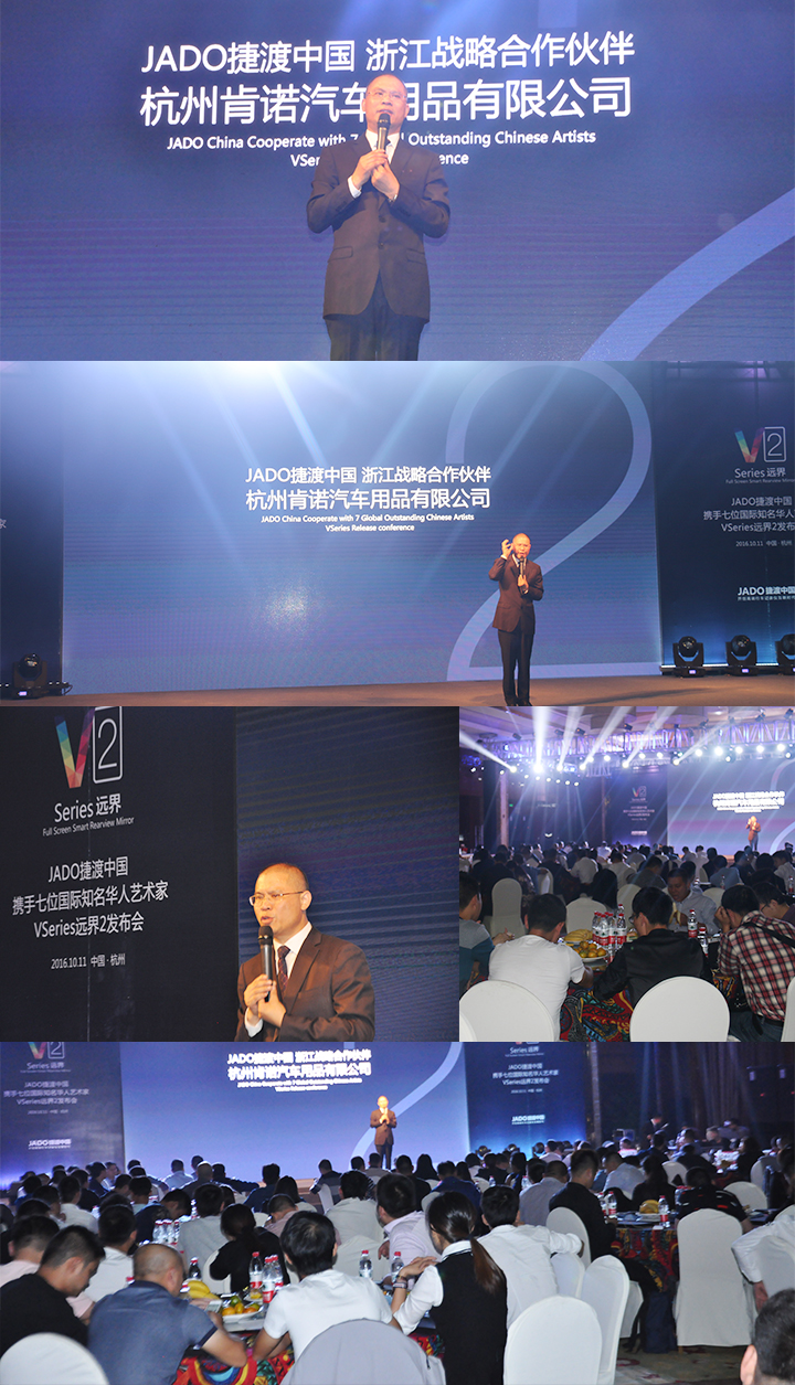 2016年10月11日,以 “再見,過去;你好,遠(yuǎn)界 Bye yesterday, Hello VSeries” 為主題的“JADO捷渡中國攜手七位國際知名華人藝術(shù)家VSeries遠(yuǎn)界2(中國• 杭州)發(fā)布會”在杭州海外海國際酒店完美落幕。本次活動由JADO捷渡中國浙江省戰(zhàn)略伙伴杭州肯諾汽車用品有限公司主辦。