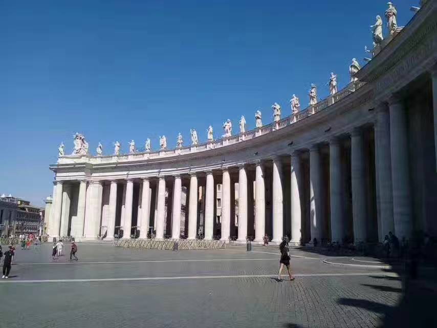 19日下午他們到達(dá)梵蒂岡,它是世界上最小的國家、人口最少的國家,四面與意大利接壤,被稱為國中國,面積只有0.44萬平方公里,大約6個(gè)足球場大小。梵蒂岡雖然小,但它有世界上最大的天主教堂圣彼得大教堂,有世界著名的梵蒂岡博物館。