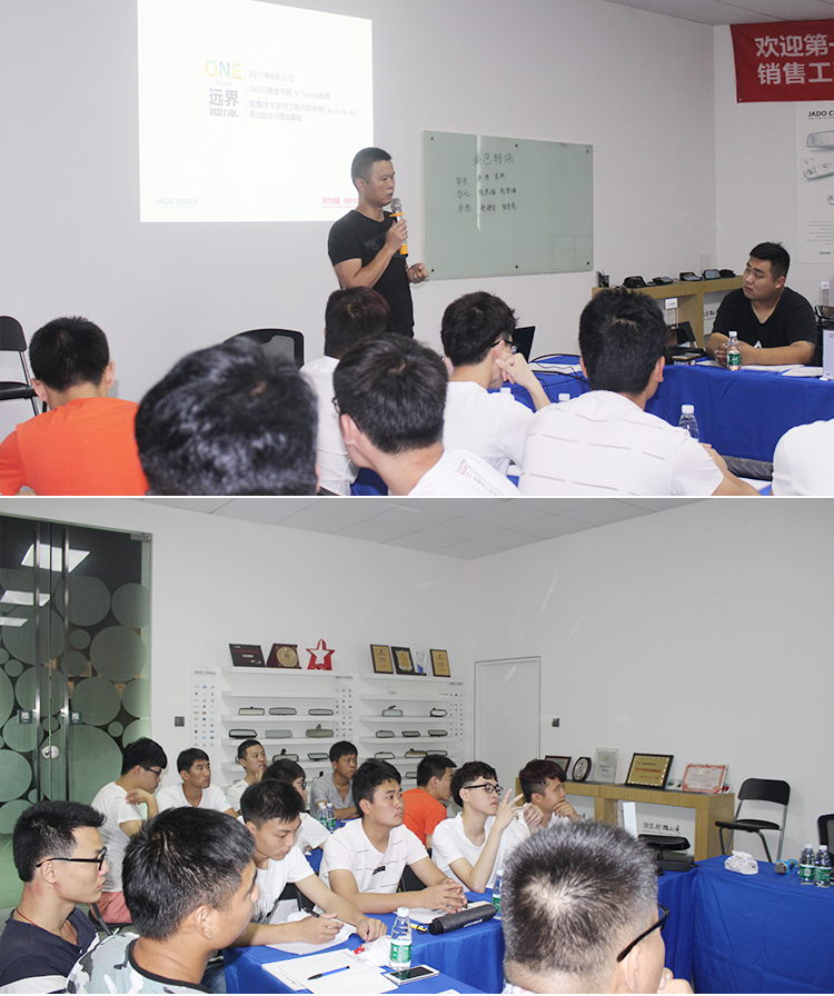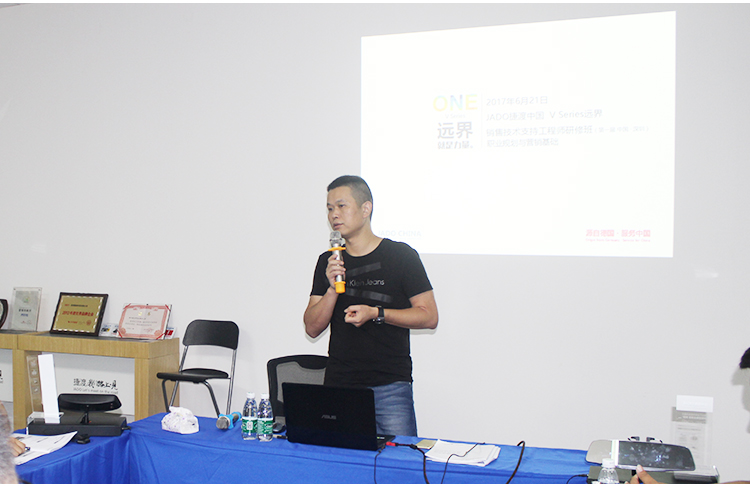 19日,研修班正式開課,首先由JADO捷渡中國研究院名譽院長王杰先生致辭,并為大家?guī)鞻Series遠界V790新品知識培訓,詳細闡述了JADO捷渡中國的概況和發(fā)展史,以及未來的戰(zhàn)略規(guī)劃。2016年JADO捷渡中國與CCTV中國中央電視臺簽約投放2100萬廣告片;2017年正式與世界500強霍尼韋爾達成7年戰(zhàn)略合作,這些標志著里程碑的舉措,無不印證著JADO捷渡中國品牌化戰(zhàn)略的進階提升。
