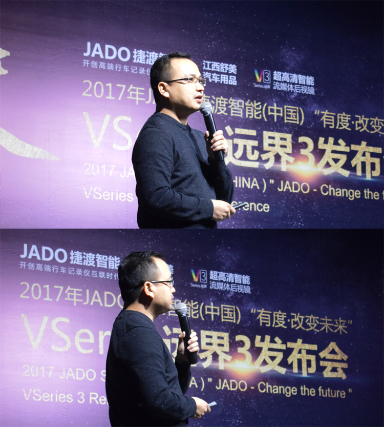 JADO捷渡智能(中國(guó))產(chǎn)品總監(jiān)吳樂(lè)明先生上臺(tái)致辭,重點(diǎn)為大家闡述了 VSeries遠(yuǎn)界系列產(chǎn)品的設(shè)計(jì)理念。面對(duì)行業(yè)的白熱化競(jìng)爭(zhēng),如何從產(chǎn)品端去精準(zhǔn)把握市場(chǎng),進(jìn)而引領(lǐng)后視鏡未來(lái)的廣闊市場(chǎng)。前裝與后裝并存、專(zhuān)業(yè)與智能的完美融合,VSeries遠(yuǎn)界3給了大家一個(gè)最佳的選擇。