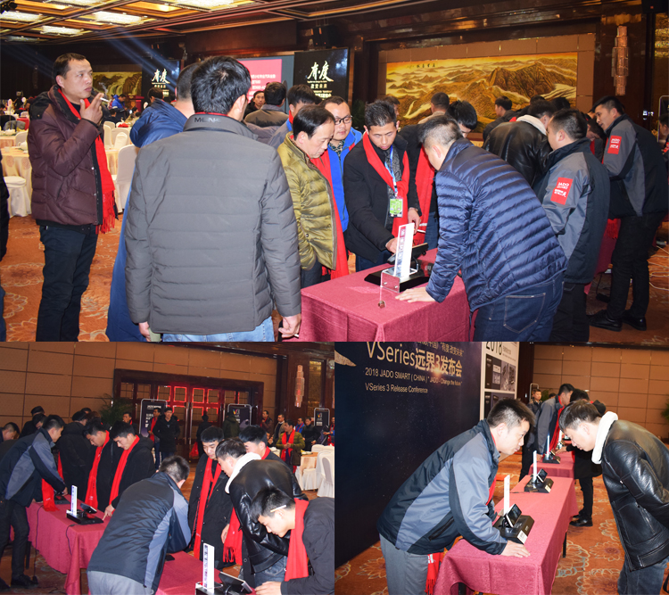發(fā)布會當天,VSeries遠界3超高清智能流媒體后視鏡的首次亮相備受矚目,發(fā)布會現(xiàn)場更是匯聚了來自JADO捷渡智能(中國)安徽省區(qū)域近300多家渠道商,現(xiàn)場氣氛其樂融融,有圖有真相——