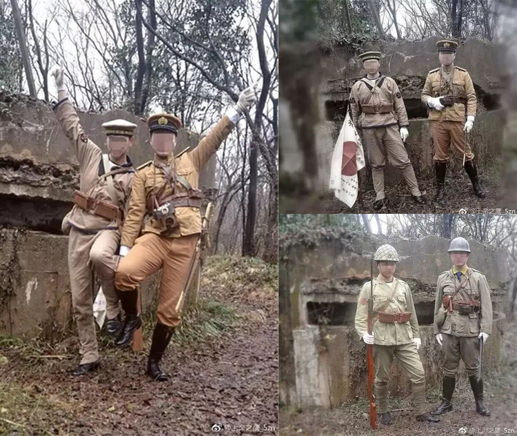 近日,有兩名青年身穿侵華日軍軍裝在南京紫金山抗戰(zhàn)遺址留影,并上傳網(wǎng)絡(luò)。2月20日,大年初五,網(wǎng)友@上帝之鷹_5zn 在微博發(fā)出了一組照片揭露此事。