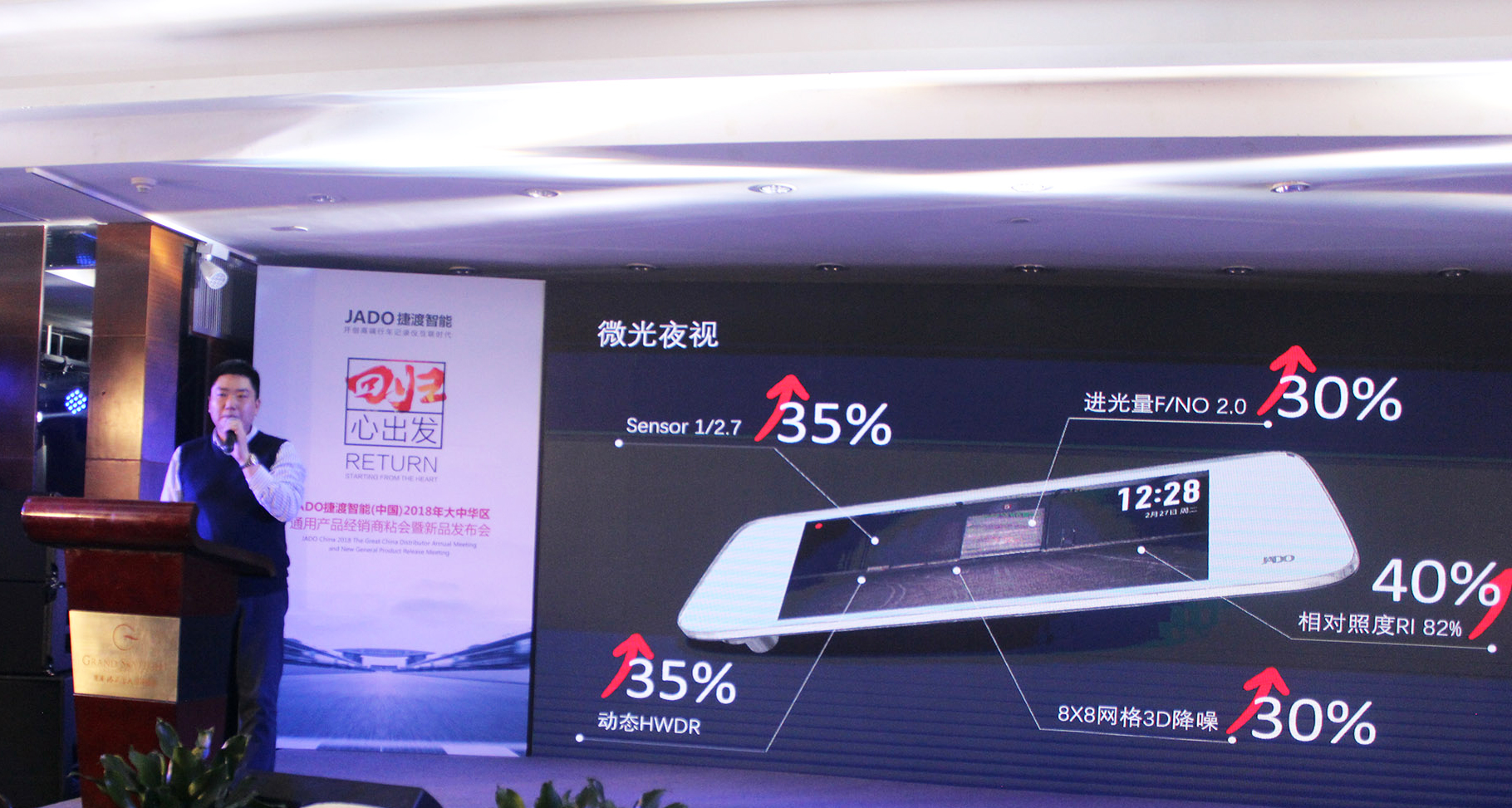 2018年2月28日,以“回歸·心出發(fā)”為主題的JADO捷渡智能(中國(guó))大中華區(qū)通用產(chǎn)品經(jīng)銷商粘會(huì)暨新品發(fā)布會(huì)在深圳觀瀾格蘭云天國(guó)際酒店隆重舉行。