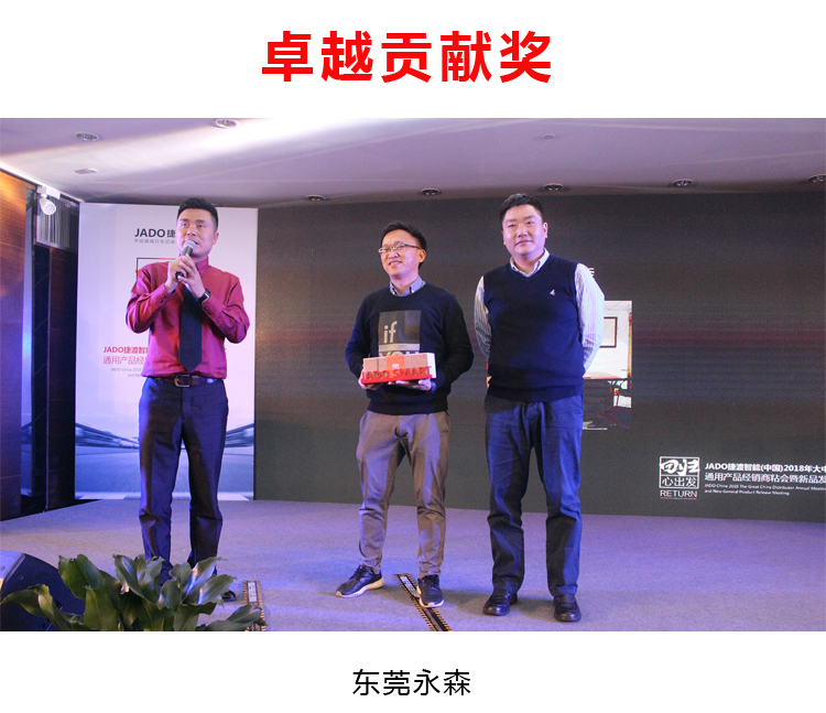 緊接著,JADO捷渡智能(中國(guó))為各個(gè)地區(qū)的優(yōu)秀戰(zhàn)略合作伙伴們予以頒獎(jiǎng)。今日取得的一切離不開在座各位戰(zhàn)略合作伙伴的幫助,感謝大家一直以來的協(xié)作!