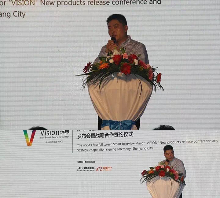 作為JADO捷渡中國戰(zhàn)略合作伙伴——沈陽眾維汽車用品有限公司總經(jīng)理董天宇先生,隨后登臺講話:“對Vision遠界在遼寧省的未來發(fā)展充滿信心,也對作為一款全屏的智能后視鏡產(chǎn)品,將會對市場以及每一個車主帶來的改變表示期待。”