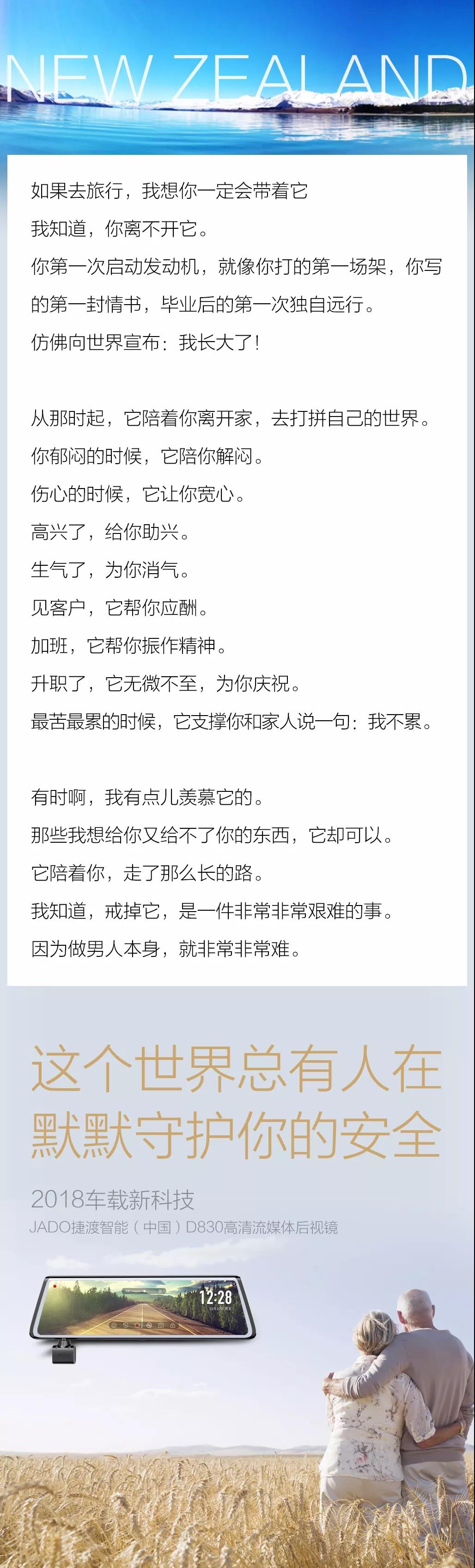 新西蘭這里的風景也許是世界上最美的,為了記錄下這些美好的風景,當然也是為了更安全,特地在國內買了一臺捷渡D830高清流媒體后視鏡裝在了我的愛車上!感覺還挺搭的,科技感滿分!