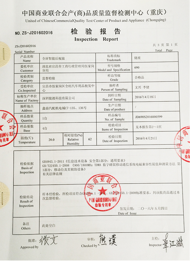 針對夏季來臨,很多機器容易出現(xiàn)死機、不正常工作,以及近期網(wǎng)上購物出現(xiàn)質(zhì)量投訴問題,當(dāng)?shù)毓ど滩块T聯(lián)合質(zhì)檢單位進行抽檢。經(jīng)過近兩周的樣本檢測,JADO捷渡中國,實力應(yīng)對考驗,成為同批參檢品牌中唯一通過質(zhì)量檢測的行車記錄儀品牌。