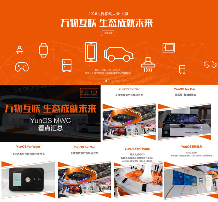 2016年6月29日-7月1日,在為期三天的展覽上,也是阿里巴巴YunOS連續(xù)第二年在MWC上亮相,通過大會向整體通信行業(yè)及產(chǎn)業(yè)鏈階段性展示YunOS幫助合作伙伴實現(xiàn)產(chǎn)業(yè)創(chuàng)新與升級的成果。JADO捷渡中國作為阿里巴巴YunOS 在行車記錄儀行業(yè)的第一家戰(zhàn)略合作伙伴受邀參展。