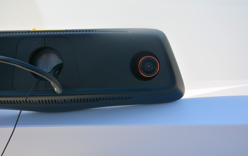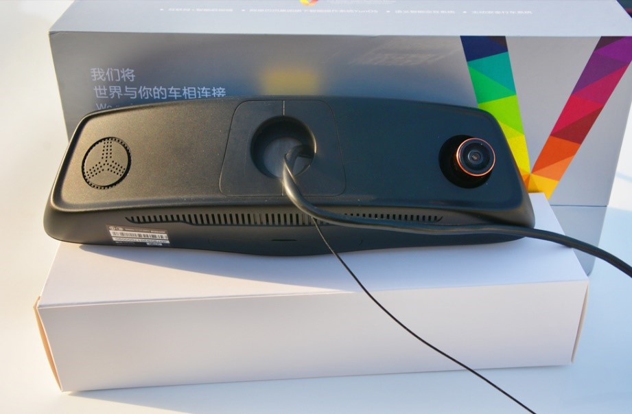 背面,左側(cè)是揚(yáng)聲器,右側(cè)是攝像頭,攝像頭略微凸出,而且還可適當(dāng)?shù)恼{(diào)整攝像頭的位置,且與前置攝像頭相匹配的還有后置攝像頭,后置攝像頭不僅可以記錄行車過(guò)程中后置場(chǎng)景,而且在倒車時(shí)也可以使用,當(dāng)然記錄行車過(guò)程中車后面的狀況才是后置攝像頭的主要功能。