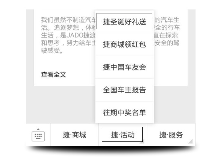 請關(guān)注并打開公眾號(hào)捷渡中國 回復(fù)關(guān)鍵詞圣誕節(jié)參與活動(dòng) 也可以點(diǎn)擊捷渡中國公眾號(hào)菜單鍵 捷·活動(dòng)—捷圣誕好禮送參與活動(dòng)